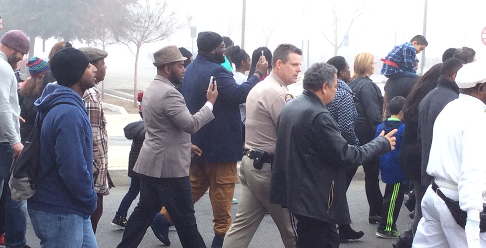 FRESNO, CA--It was the midst of a slightly foggy day with a brash of cold Central Valley air where over 250 people gathered in front of St. John's Cathedral to honor the Civil Rights leader, Rev. Dr. Martin Luther King, Jr.and March on Washington through symbolically marching, although a short distance, around the corner to Fresno's city hall building.